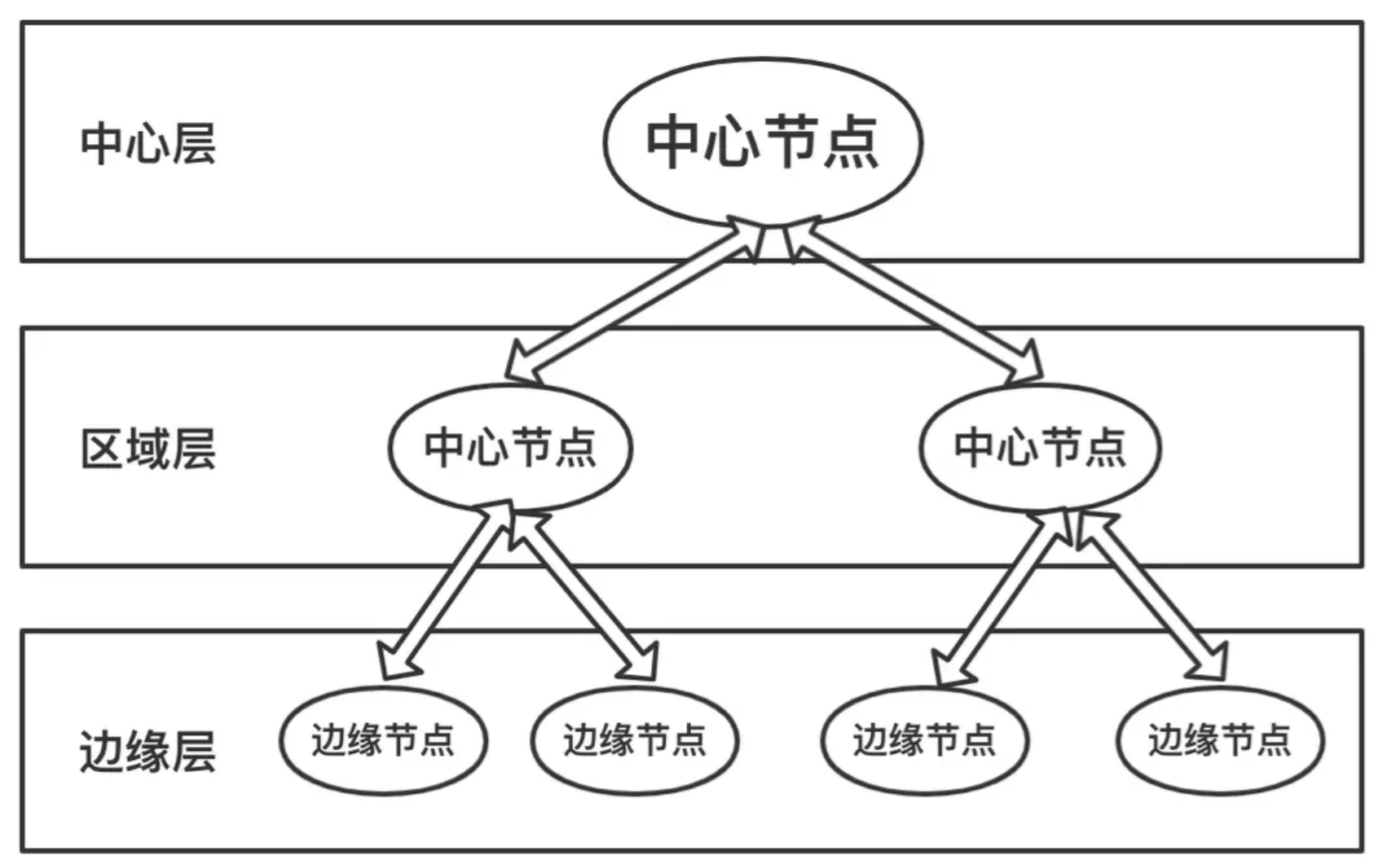 不同CDN系统设计之间存在差异,中心层可能具备用户服务能力,也可能不直接提供服务,只向下级节点提供内容。如果CDN网络规模较大,边缘层设备直接向中心层请求内容或服务会造成中心层设备压力过大,就要考虑在边缘层和中心层之间部署一个区域层,负责一个区域的管理和控制,也保存部分内容副本供边缘层访问。 如图是一个典型的CDN系统三级部署示意图